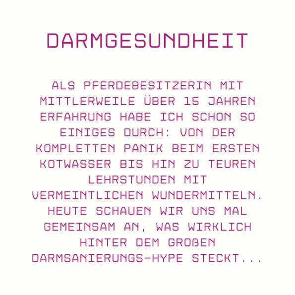 Ach, die gute alte Darmsanierung! Ein Thema, das die Pferdebesitzer-Gemeinde ebenso spaltet wie die Diskussion um Barhuf laufen oder Hufeisen tragen. Die einen schwören drauf wie auf ihren morgendlichen Kaffee, die anderen winken ab wie bei einem schlechten Witz. Als Pferdebesitzerin mit mittlerweile über 15 Jahren Erfahrung habe ich schon so einiges durch: Von der [...]