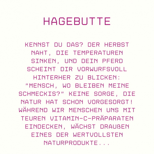 Kennst du das? Der Herbst naht, die Temperaturen sinken, und dein Pferd scheint dir vorwurfsvoll hinterher zu blicken: "Mensch, wo bleiben meine Schmeckis?" Keine Sorge, die Natur hat schon vorgesorgt! Während wir Menschen uns mit teuren Vitamin-C-Präparaten eindecken, wächst draußen eines der wertvollsten Naturprodukte für unsere Pferde: die Hagebutte! Inhaltsverzeichnis ToggleNaturtalent: Die heimische HagebutteHagebutten-Wirkung: Mehr [...]