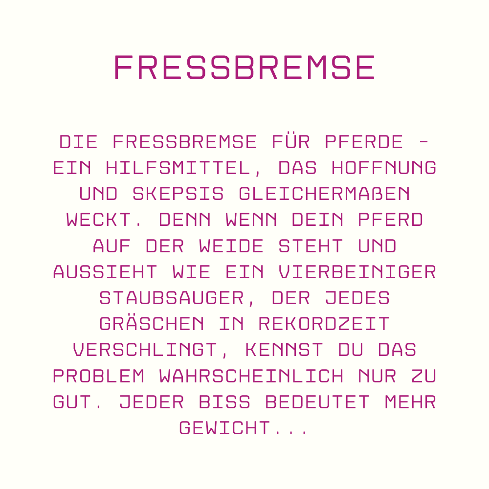 Die Fressbremse für Pferde – ein Hilfsmittel, das Hoffnung und Skepsis gleichermaßen weckt. Denn wenn dein Pferd auf der Weide steht und aussieht wie ein vierbeiniger Staubsauger, der jedes Gräschen in Rekordzeit verschlingt, kennst du das Problem wahrscheinlich nur zu gut. Jeder Biss bedeutet mehr Gewicht, mehr Gesundheitsrisiko, mehr Sorgen. Auf der anderen Seite willst du deinem Pferd aber auch nicht die Freiheit und das Glück auf der Weide nehmen. Genau für solche Momente des Zwiespalts gibt es die Fressbremse.