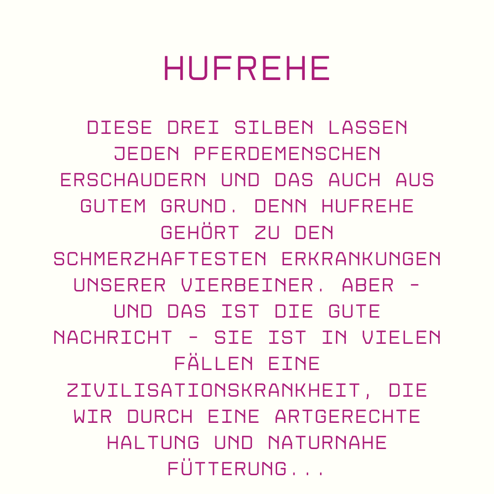 Hufrehe. Diese drei Silben lassen jeden Pferdemenschen erschaudern und das auch aus gutem Grund. Denn Hufrehe gehört zu den schmerzhaftesten Erkrankungen unserer Vierbeiner. Aber – und das ist die gute Nachricht – sie ist in vielen Fällen eine Zivilisationskrankheit, die wir durch eine artgerechte Haltung und naturnahe Fütterung verhindern können.